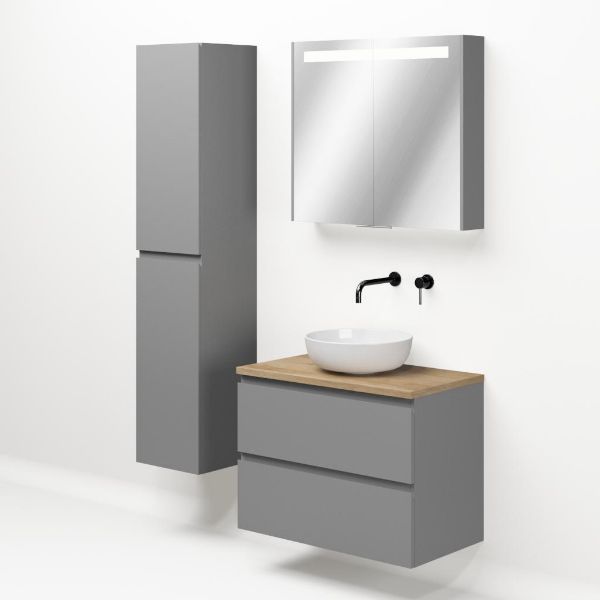 | Bellanti Gisella/Lamina badmeubel 80x46cm 2 laden mat grijs greeploos met afdekblad 2.5cm dikte olm - exclusief waskom : waskom naar keuze |