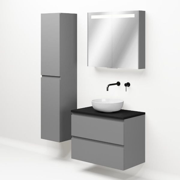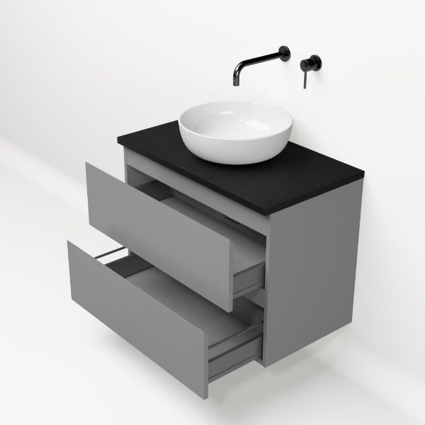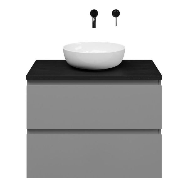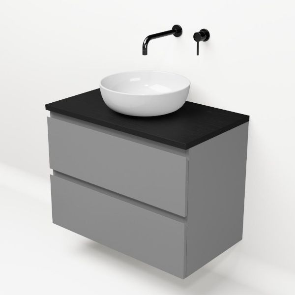 | | Bellanti Gisella/Lamina badmeubel 80x46cm 2 laden mat grijs greeploos met afdekblad 2.5cm dikte mat zwart eiken - exclusief waskom : waskom naar keuze |