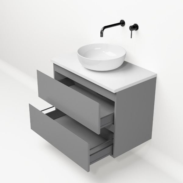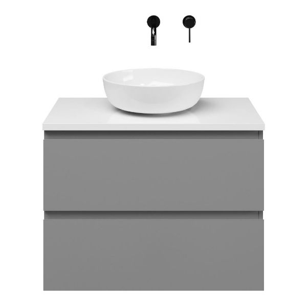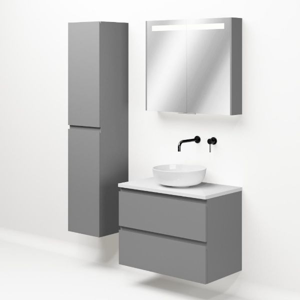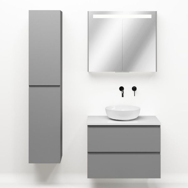 | | Bellanti Gisella/Lamina badmeubel 80x46cm 2 laden mat grijs greeploos met afdekblad 2.5cm dikte wit hoogglans - exclusief waskom : waskom naar keuze |