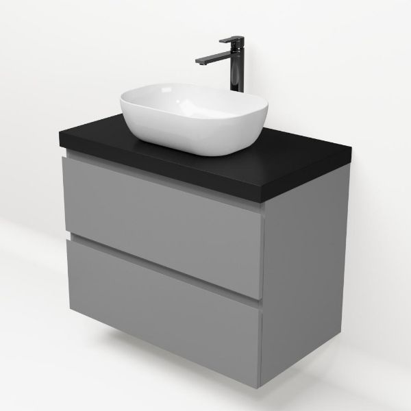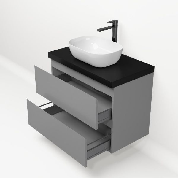| | Bellanti Gisella/Lamina badmeubel 80x46cm 2 laden mat grijs greeploos met afdekblad 5cm dikte mat zwart - exclusief waskom : waskom naar keuze |