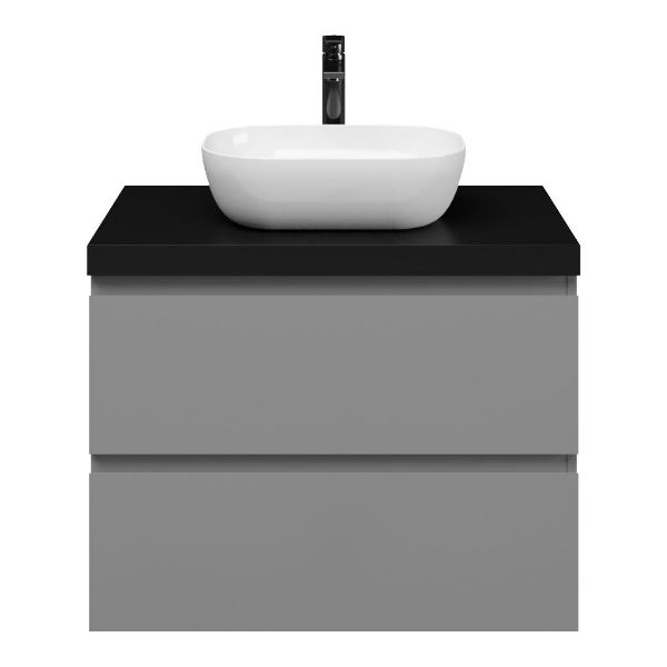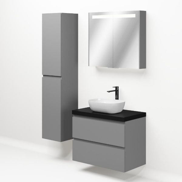 | Bellanti Gisella/Lamina badmeubel 80x46cm 2 laden mat grijs greeploos met afdekblad 5cm dikte mat zwart - exclusief waskom : waskom naar keuze |