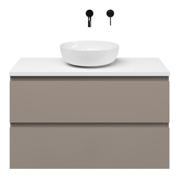 | | Bellanti Gisella/Lamina badmeubel 100x46cm 2 laden taupe met afdekblad 2.5cm dikte wit mat - exclusief waskom : waskom naar keuze |