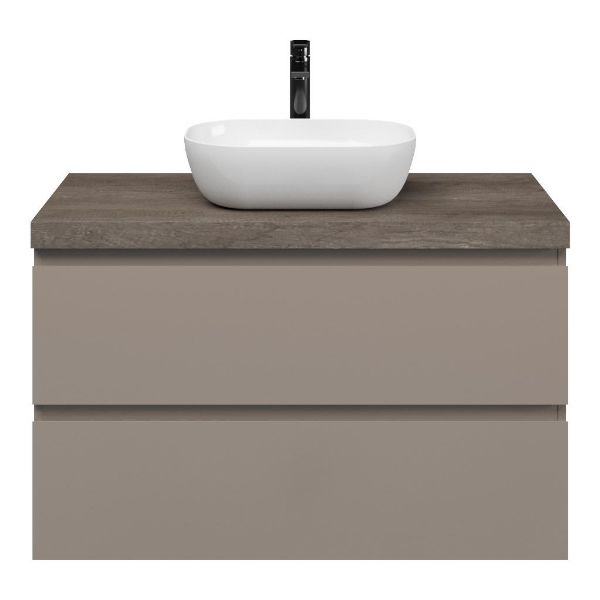 | | Bellanti Gisella/Lamina badmeubel 100x46cm 2 laden taupe met afdekblad 5cm dikte olm donker grijs - exclusief waskom : waskom naar keuze |