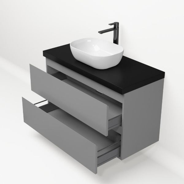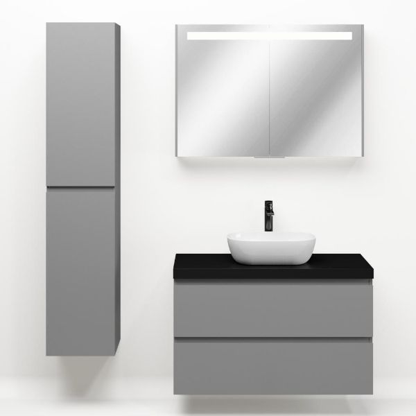 | | Bellanti Gisella/Lamina badmeubel 100x46cm 2 laden licht grijs greeploos met afdekblad 5cm dikte mat zwart - exclusief waskom : waskom naar keuze |