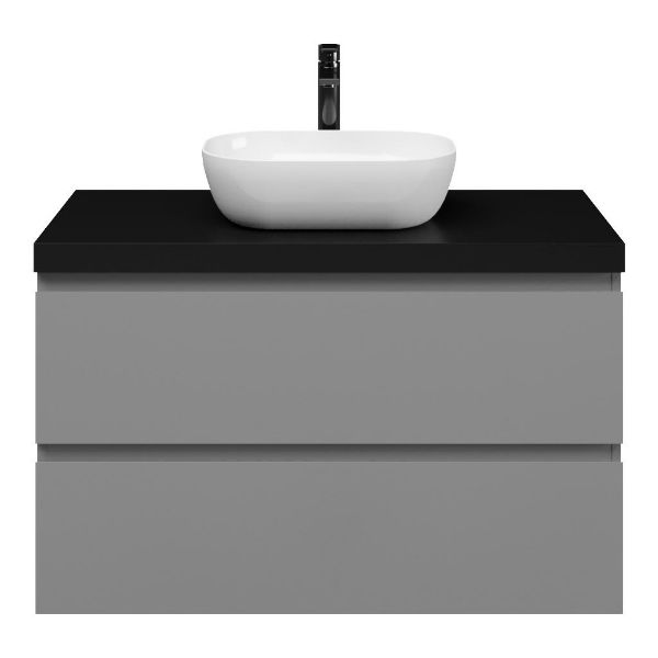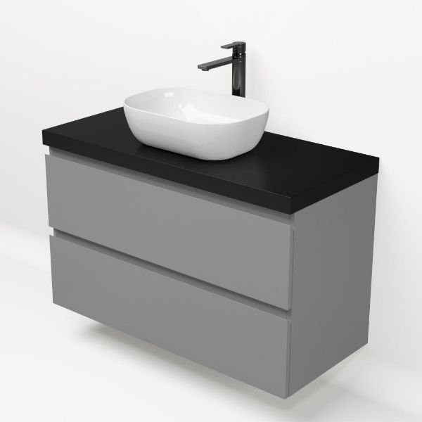 | Bellanti Gisella/Lamina badmeubel 100x46cm 2 laden licht grijs greeploos met afdekblad 5cm dikte mat zwart - exclusief waskom : waskom naar keuze |