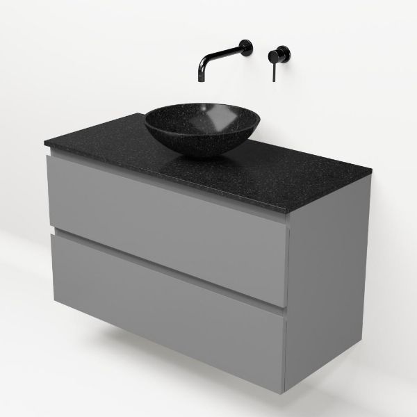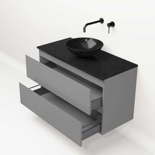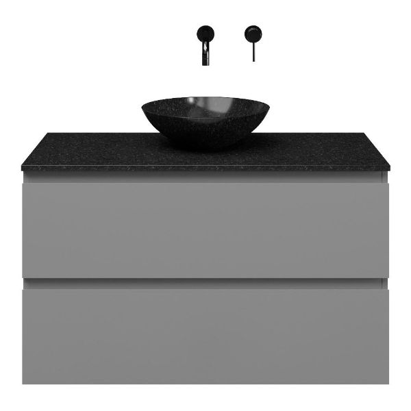 | Bellanti Gisella/Lamina badmeubel 100x46cm 2 laden licht grijs greeploos met afdekblad 2cm dikte natuursteen shanxi black zonder kraangat - exclusief waskom : waskom naar keuze |
