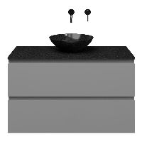 | | Bellanti Gisella/Lamina badmeubel 100x46cm 2 laden licht grijs greeploos met afdekblad 2cm dikte natuursteen shanxi black zonder kraangat - exclusief waskom : waskom naar keuze |