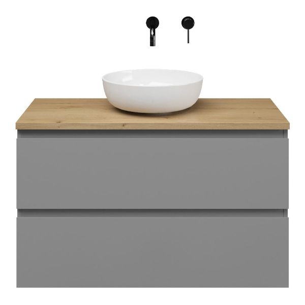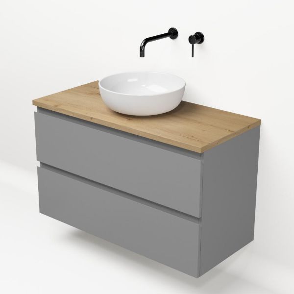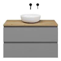 | | Bellanti Gisella/Lamina badmeubel 100x46cm 2 laden grijs mat greeploos met afdekblad 2.5cm dikte eiken natuur - exclusief waskom : waskom naar keuze |