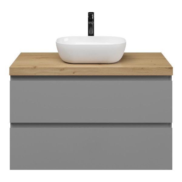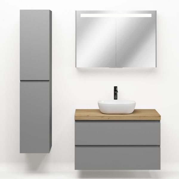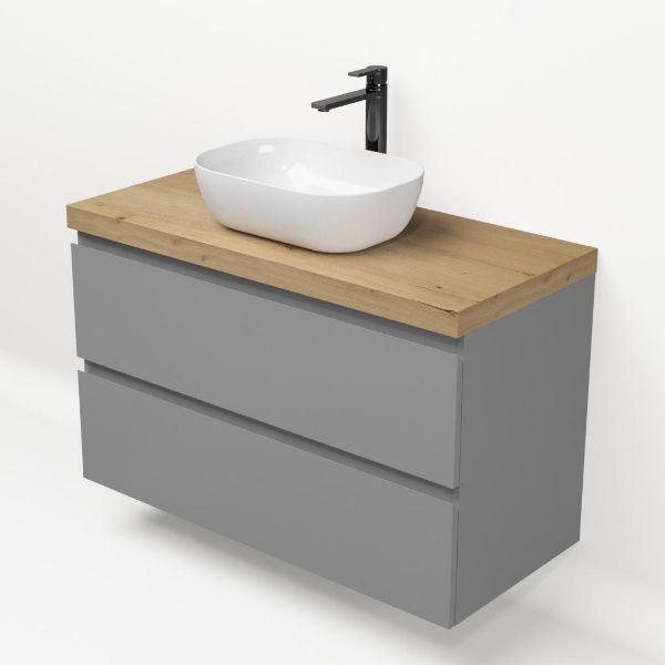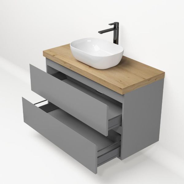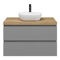 | | Bellanti Gisella/Lamina badmeubel 100x46cm 2 laden grijs mat greeploos met afdekblad 5cm dikte eiken natuur - exclusief waskom : waskom naar keuze |
