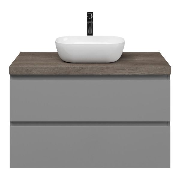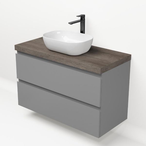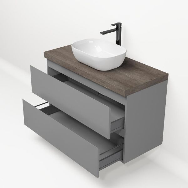 | | Bellanti Gisella/Lamina badmeubel 100x46cm 2 laden grijs mat greeploos met afdekblad 5cm dikte olm donker grijs - exclusief waskom : waskom naar keuze |