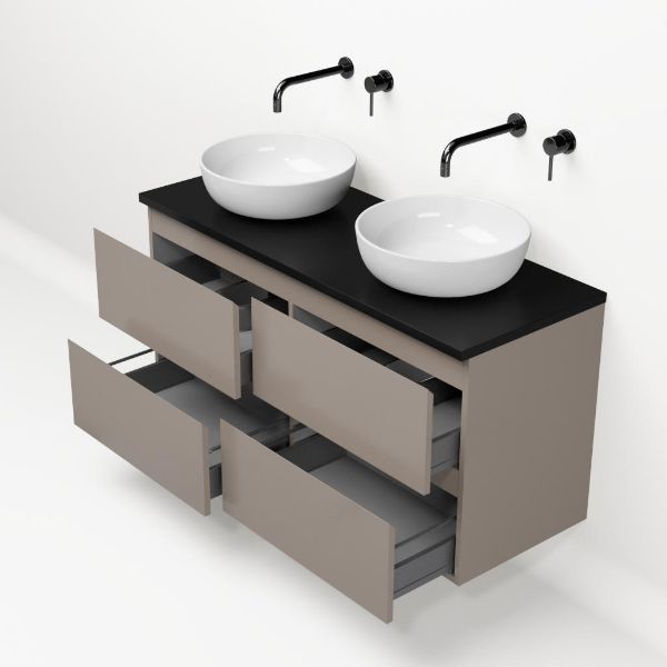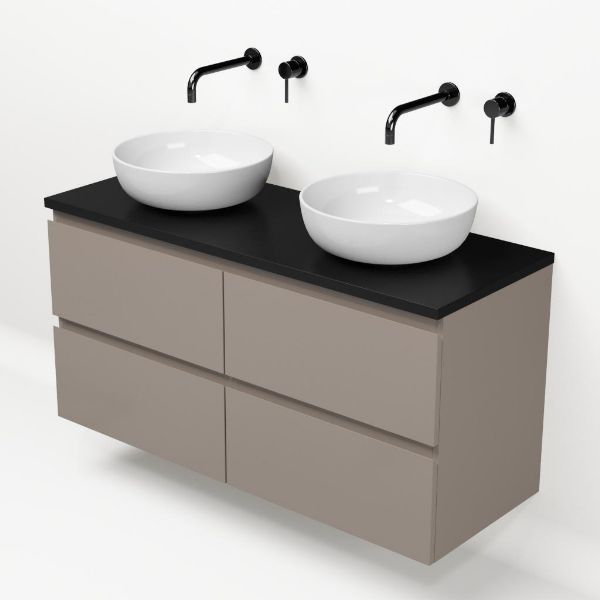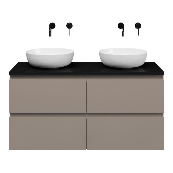 | | Bellanti Gisella/Lamina badmeubel 120x46cm 4 laden taupe greeploos met afdekblad 2.5cm dikte mat zwart - exclusief waskom : waskom naar keuze |