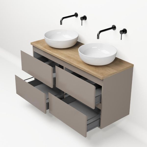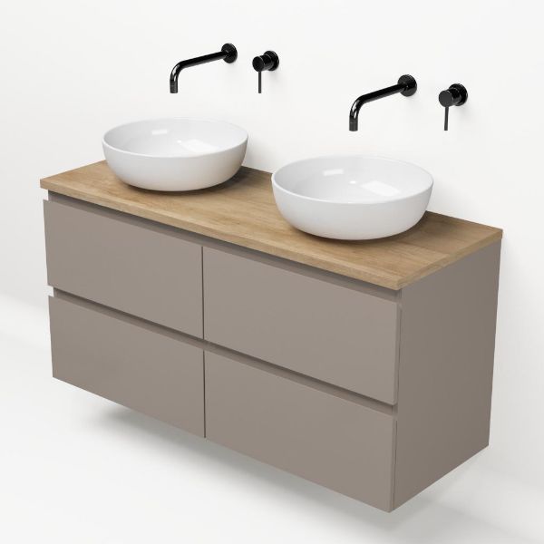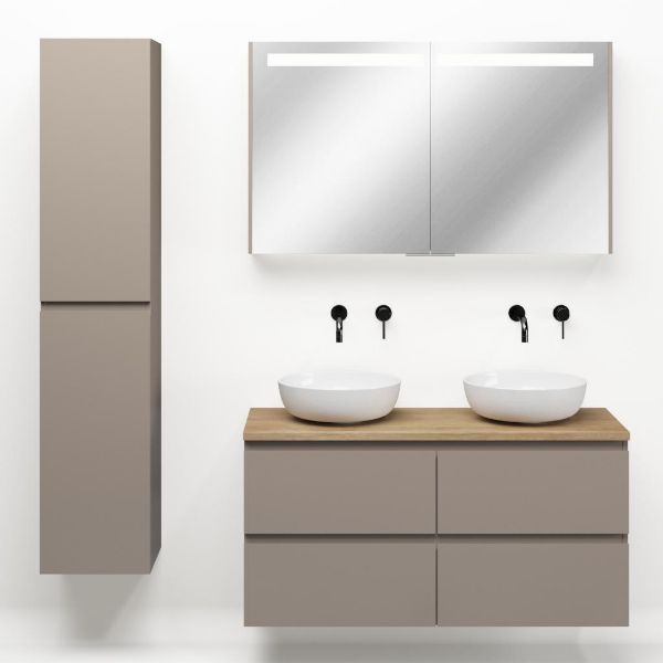 | Bellanti Gisella/Lamina badmeubel 120x46cm 4 laden taupe greeploos met afdekblad 2.5cm dikte olm - exclusief waskom : waskom naar keuze |