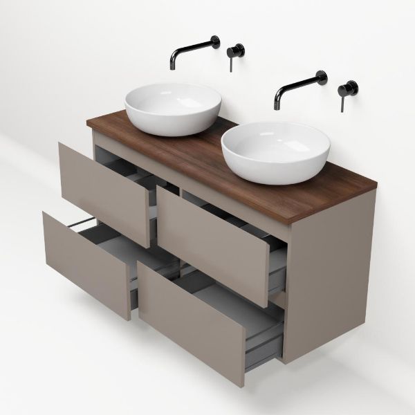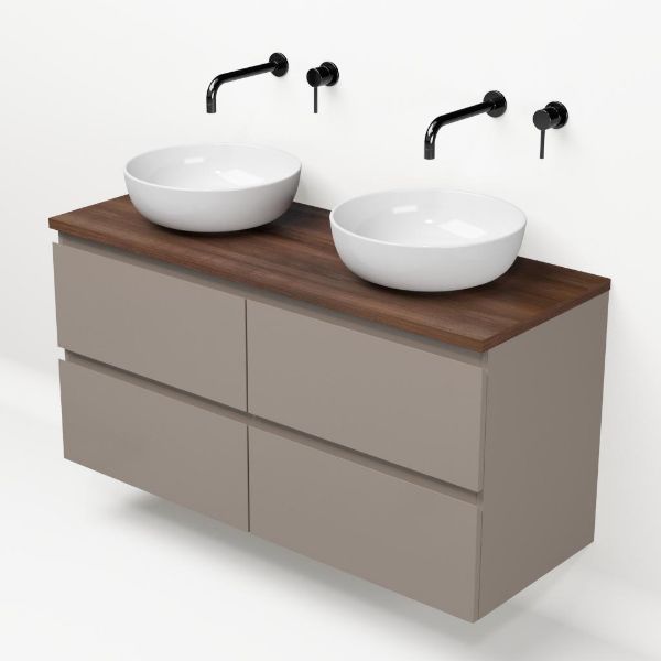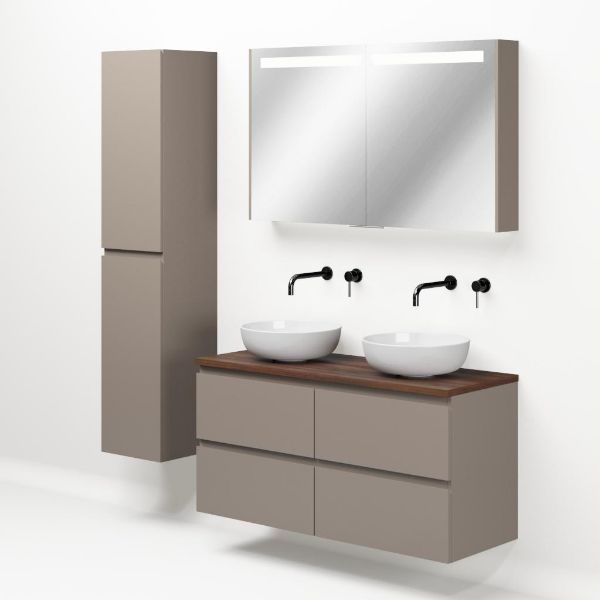 | Bellanti Gisella/Lamina badmeubel 120x46cm 4 laden taupe greeploos met afdekblad 2.5cm dikte walnoot - exclusief waskom : waskom naar keuze |
