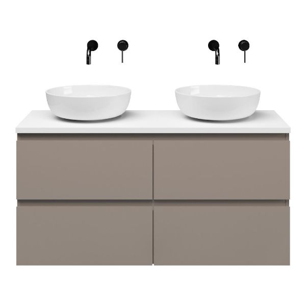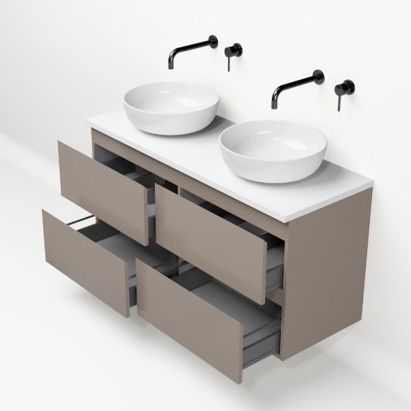 | | Bellanti Gisella/Lamina badmeubel 120x46cm 4 laden taupe greeploos met afdekblad 2.5cm dikte wit mat - exclusief waskom : waskom naar keuze |