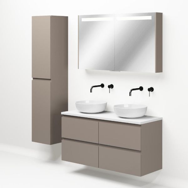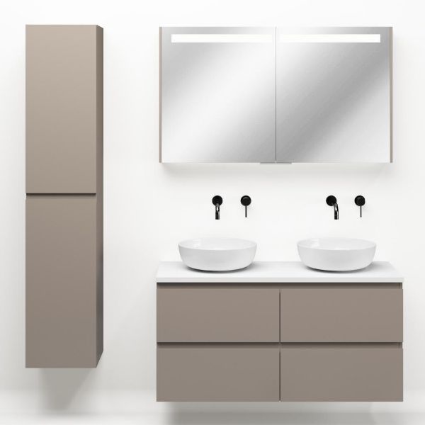 | Bellanti Gisella/Lamina badmeubel 120x46cm 4 laden taupe greeploos met afdekblad 2.5cm dikte wit mat - exclusief waskom : waskom naar keuze |