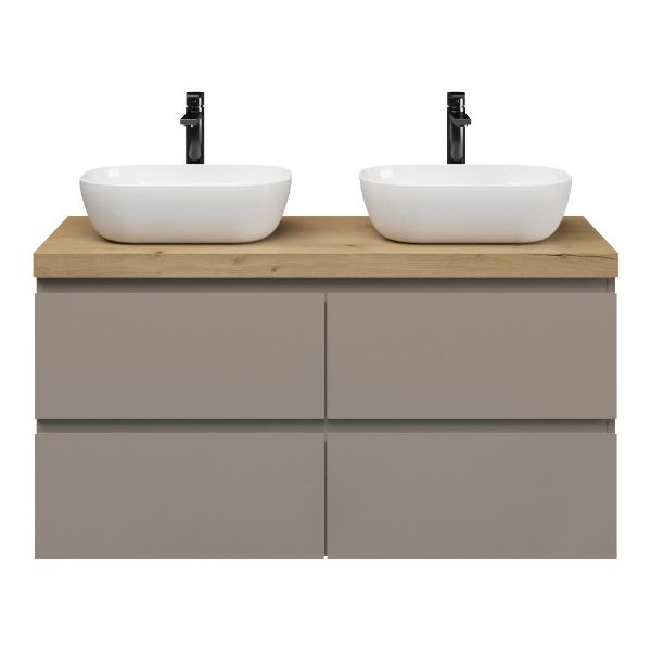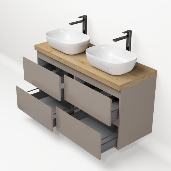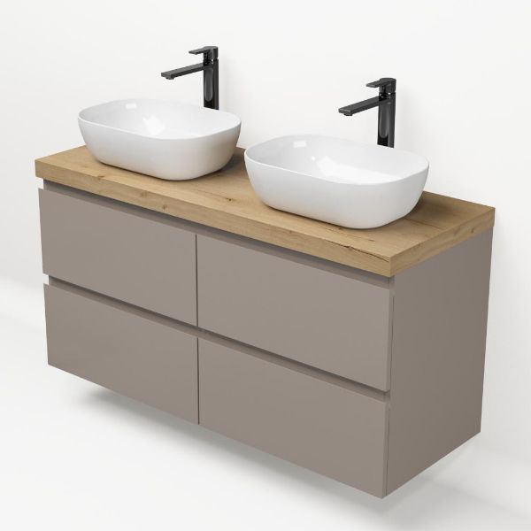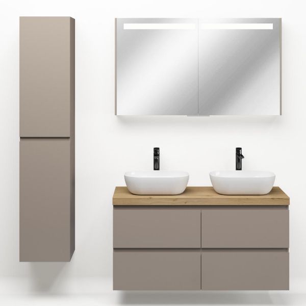| | Bellanti Gisella/Lamina badmeubel 120x46cm 4 laden taupe greeploos met afdekblad 5cm dikte eiken natuur - exclusief waskom : waskom naar keuze |