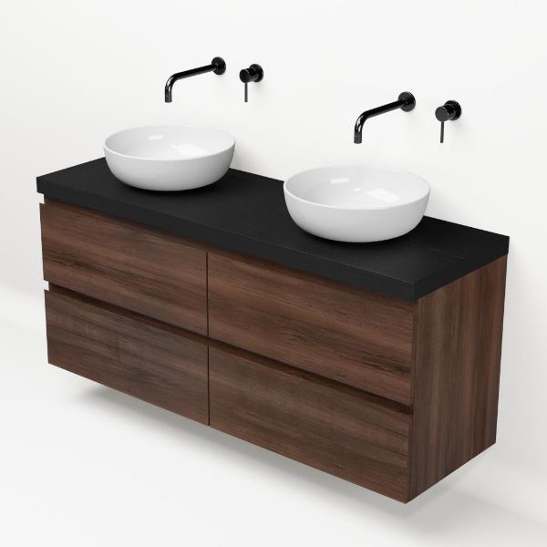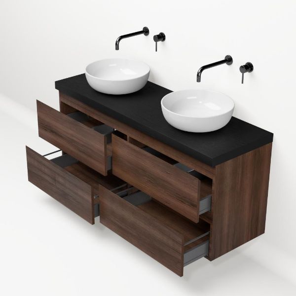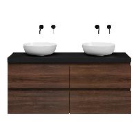 | | Bellanti Gisella/Lamina badmeubel 140x46cm 4 laden walnoot greeploos met afdekblad 5cm dikte mat zwart eiken - exclusief waskom : waskom naar keuze |