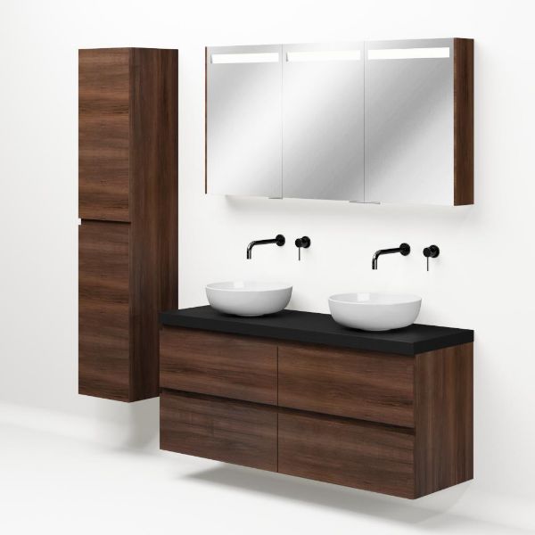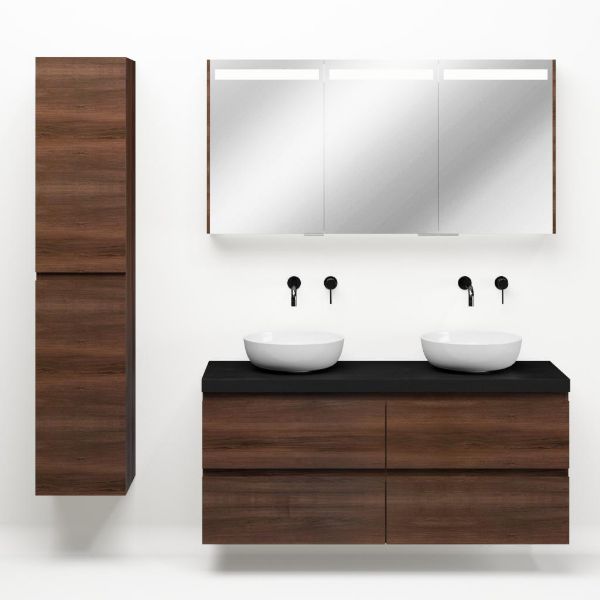 | Bellanti Gisella/Lamina badmeubel 140x46cm 4 laden walnoot greeploos met afdekblad 5cm dikte mat zwart eiken - exclusief waskom : waskom naar keuze |