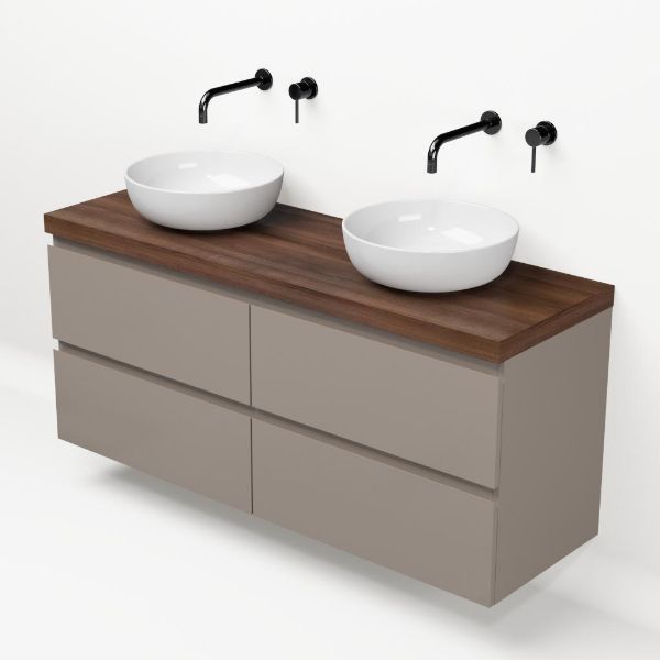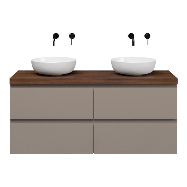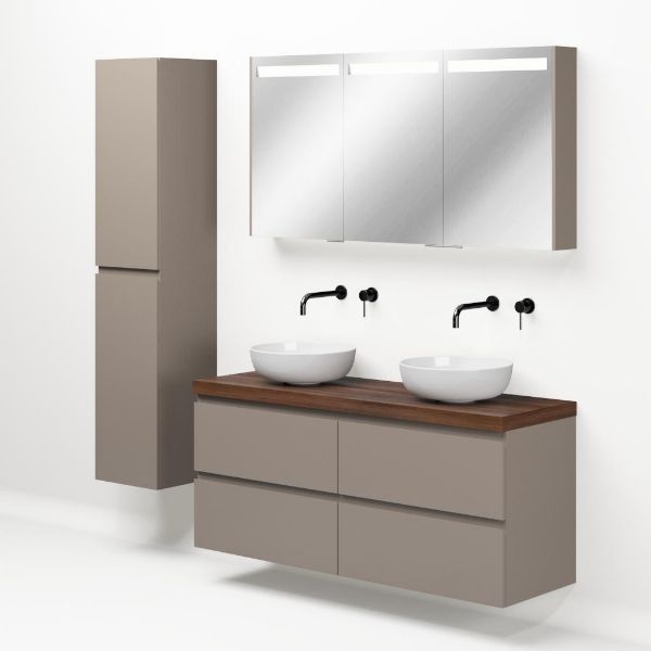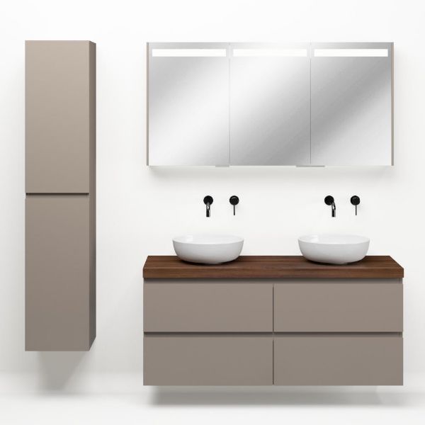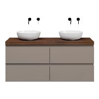 | | Bellanti Gisella/Lamina badmeubel 140x46cm 4 laden taupe greeploos met afdekblad 5cm dikte walnoot - exclusief waskom : waskom naar keuze |
