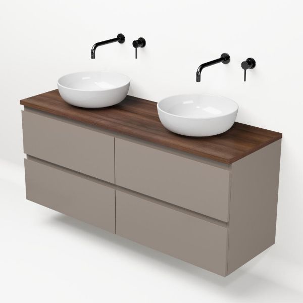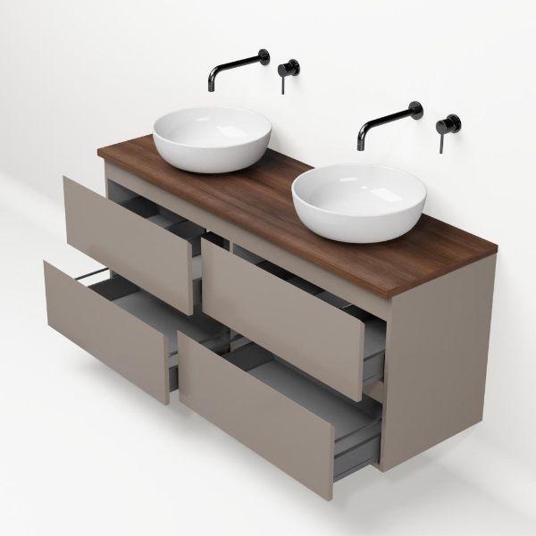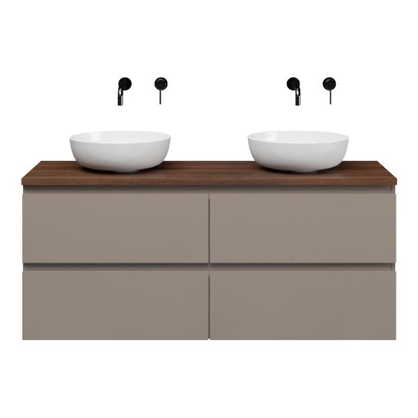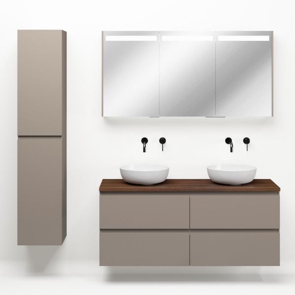| | Bellanti Gisella/Lamina badmeubel 140x46cm 4 laden taupe greeploos met afdekblad 2.5cm dikte walnoot - exclusief waskom : waskom naar keuze |