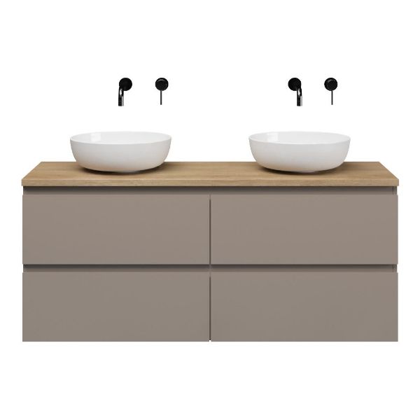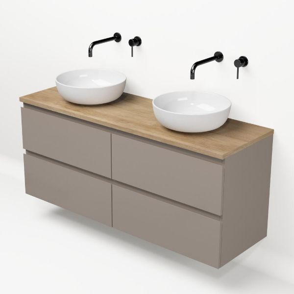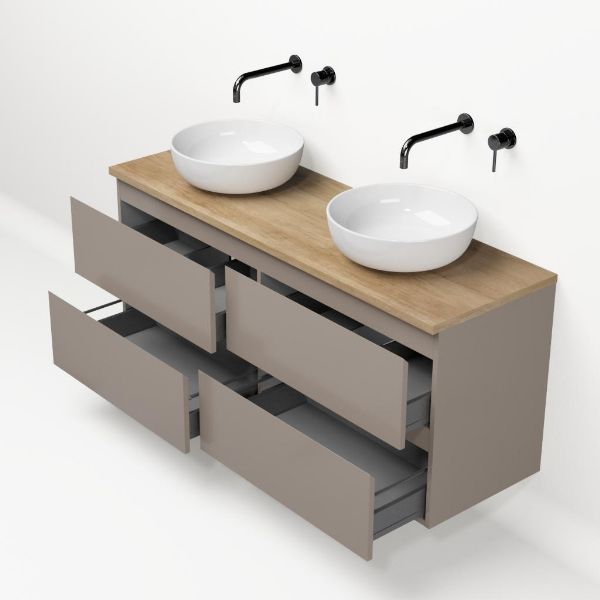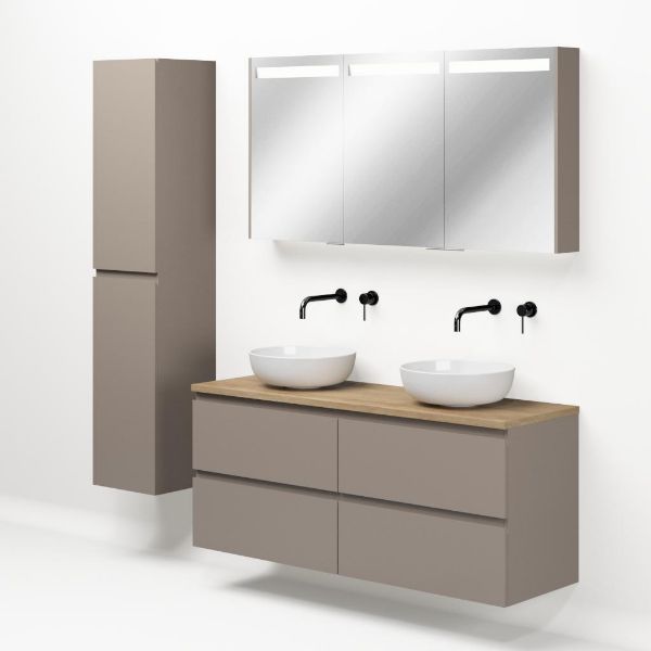 | | Bellanti Gisella/Lamina badmeubel 140x46cm 4 laden taupe greeploos met afdekblad 2.5cm dikte olm - exclusief waskom : waskom naar keuze |