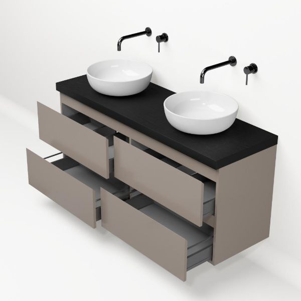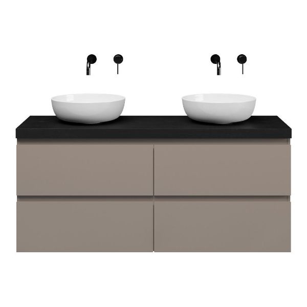 | Bellanti Gisella/Lamina badmeubel 140x46cm 4 laden taupe greeploos met afdekblad 5cm dikte mat zwart eiken - exclusief waskom : waskom naar keuze |