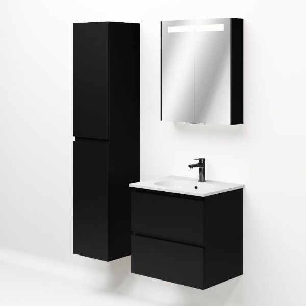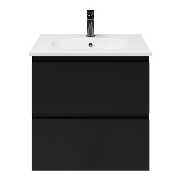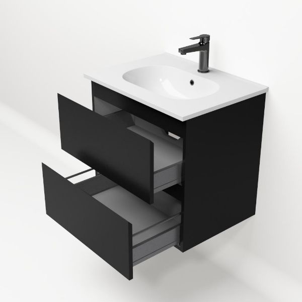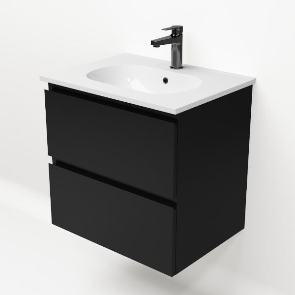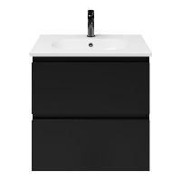 Bellanti Gisella/Como badmeubel 60x46 2 softclose laden zwart mat greeploos keramische wastafel wit met 1 kraangat
