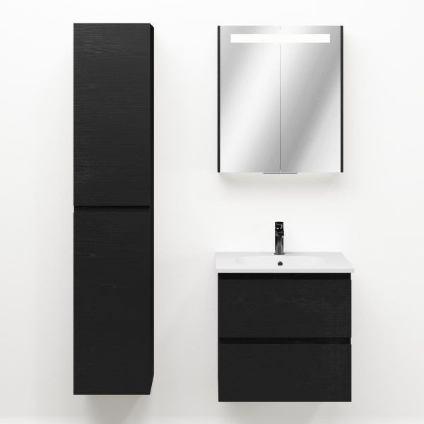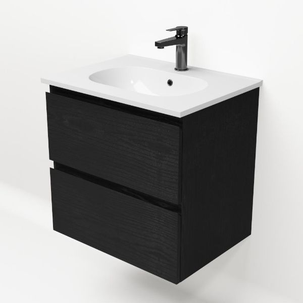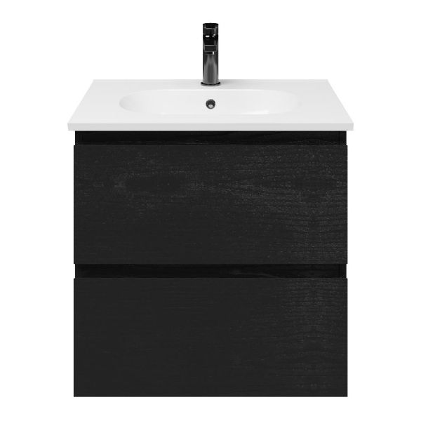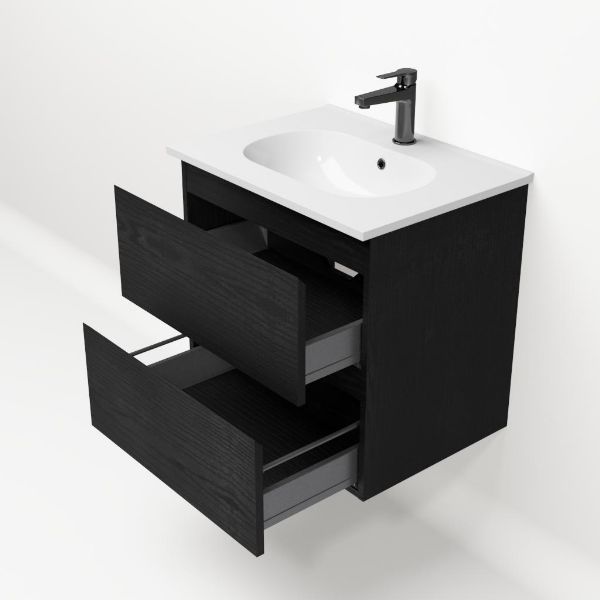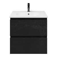 Bellanti Gisella/Como badmeubel 60x46 2 softclose laden zwart mat eiken greeploos keramische wastafel wit met 1 kraangat