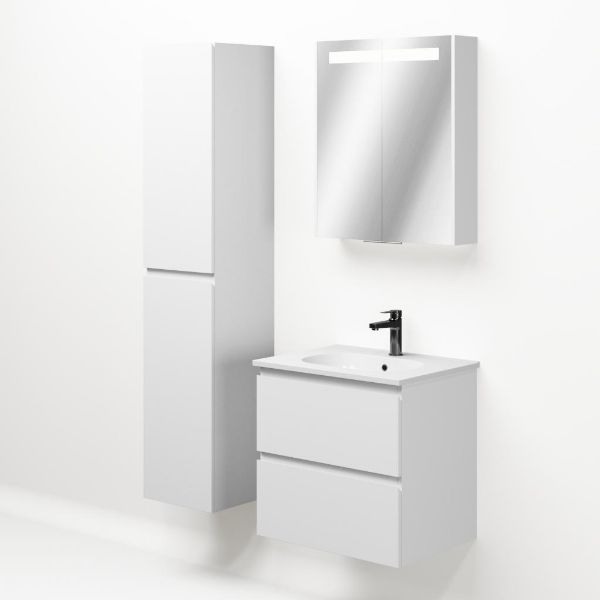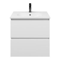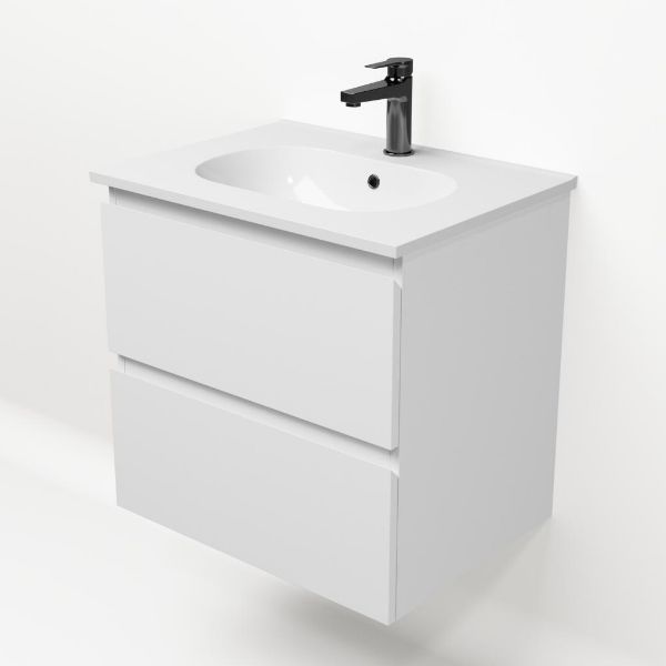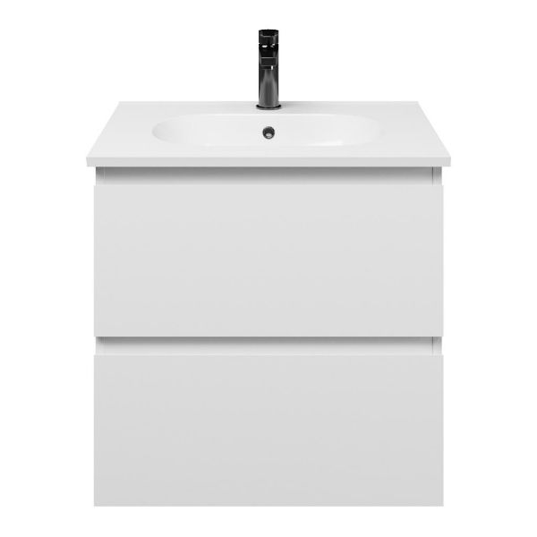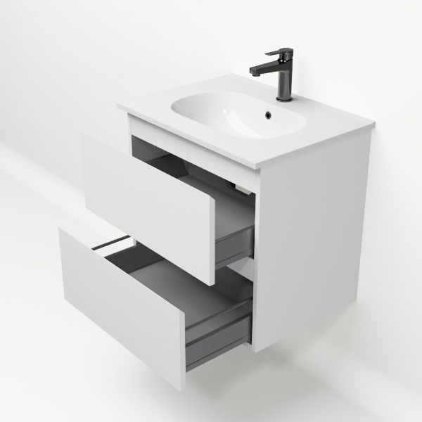 Bellanti Gisella/Como badmeubel 60x46 2 softclose laden wit mat greeploos keramische wastafel wit met 1 kraangat