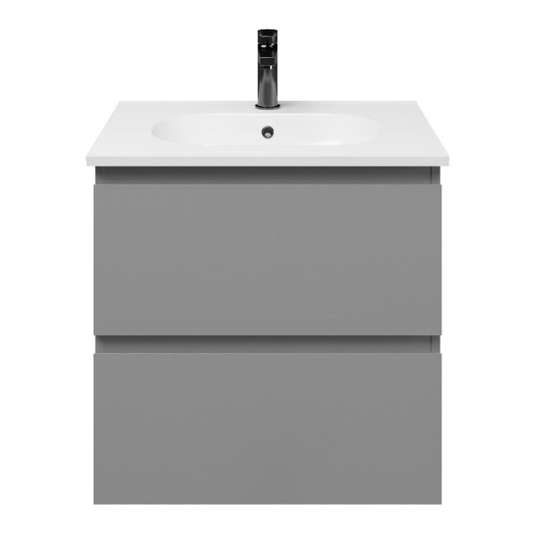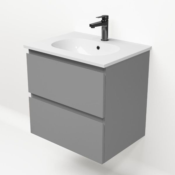 Bellanti Gisella/Como badmeubel 60x46 2 softclose laden mat grijs greeploos keramische wastafel wit met 1 kraangat