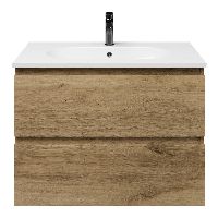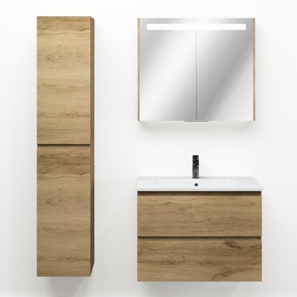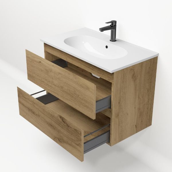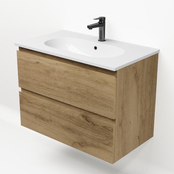 Bellanti Gisella/Como badmeubel 80x46 2 softclose laden warm eiken greeploos keramische wastafel wit met 1 kraangat