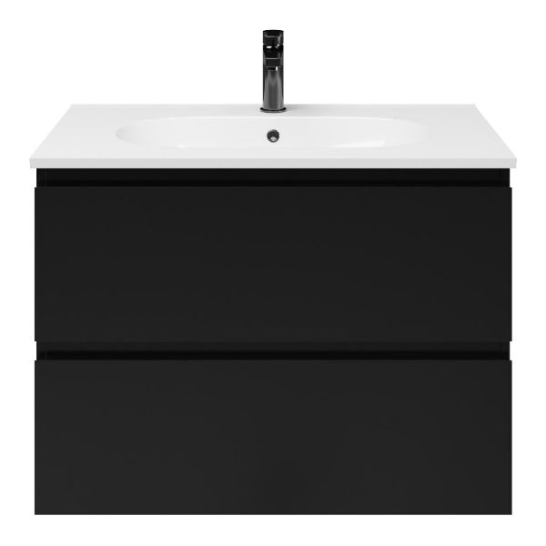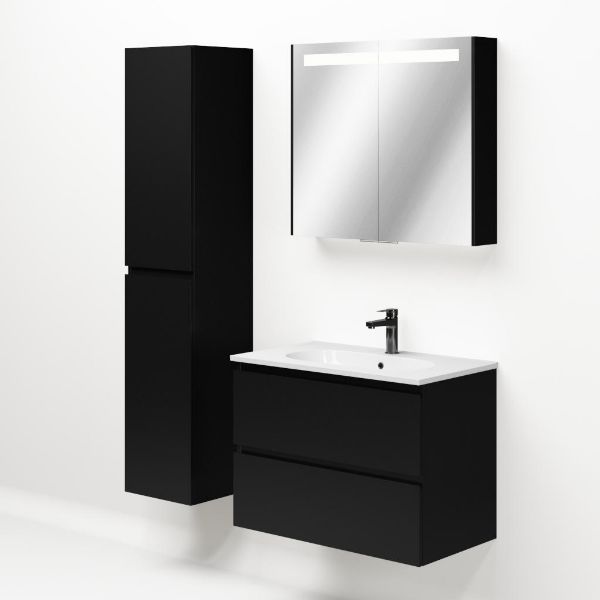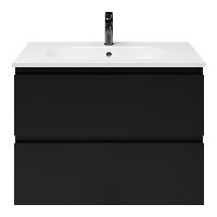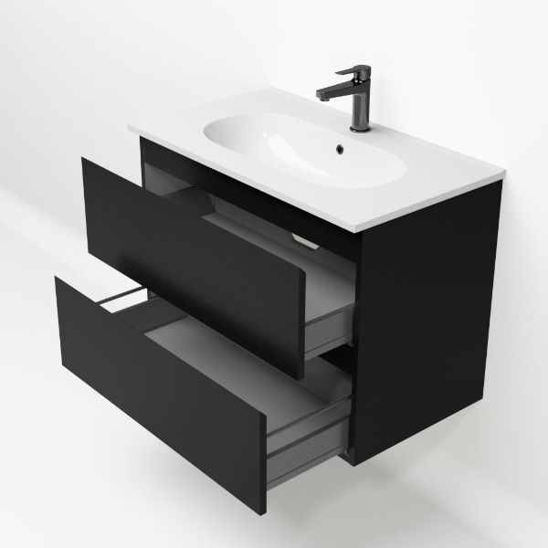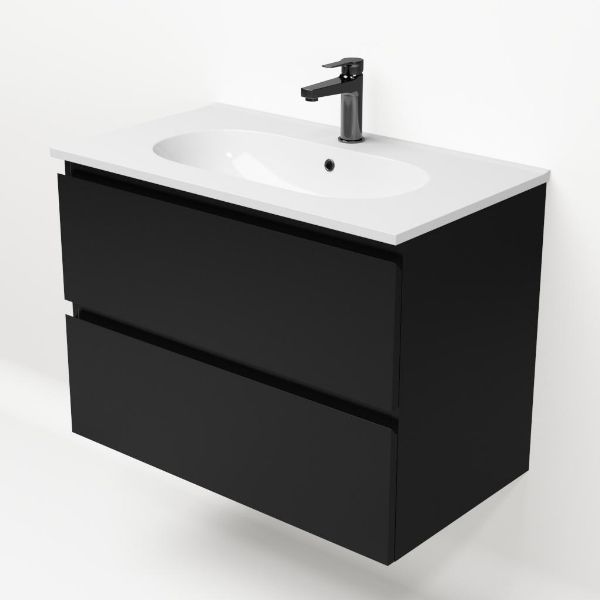 Bellanti Gisella/Como badmeubel 80x46 2 softclose laden zwart mat greeploos keramische wastafel wit met 1 kraangat