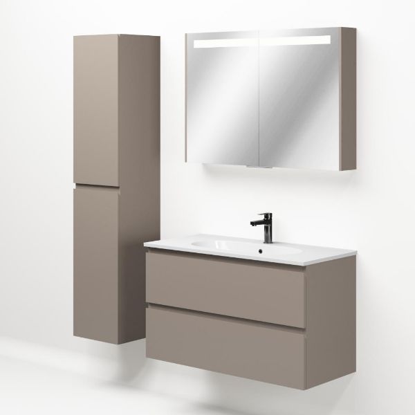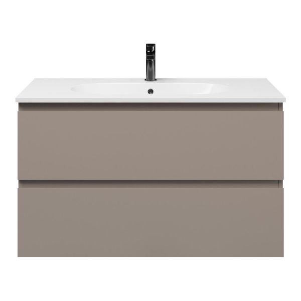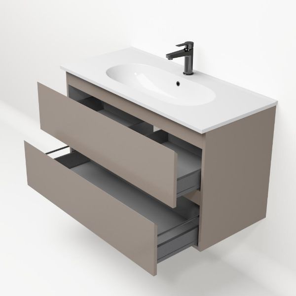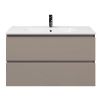 Bellanti Gisella/Como badmeubel 100x46 2 softclose laden taupe greeploos keramische wastafel wit met 1 kraangat