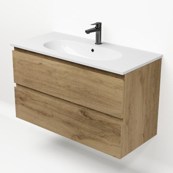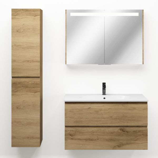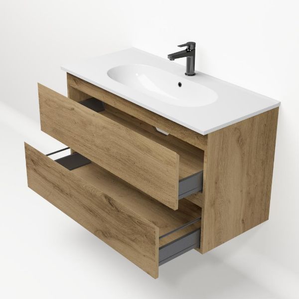 Bellanti Gisella/Como badmeubel 100x46 2 softclose laden warm eiken greeploos keramische wastafel wit met 1 kraangat