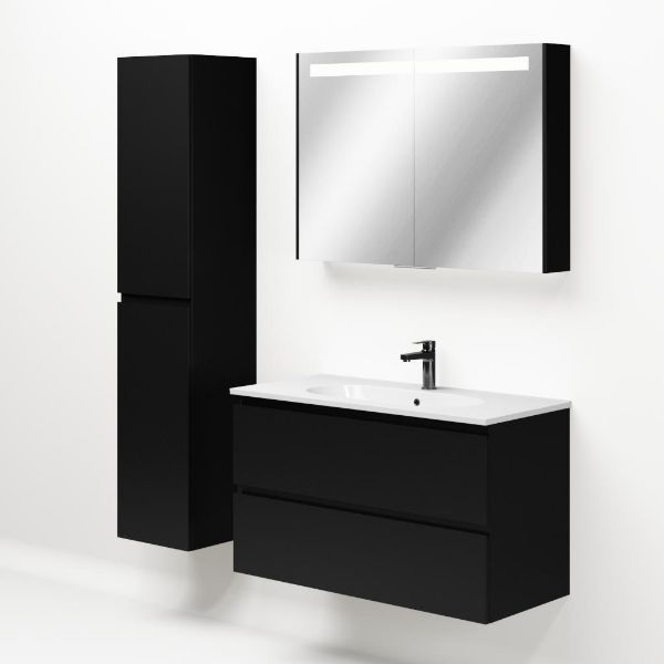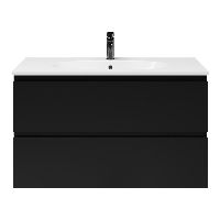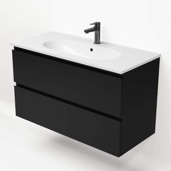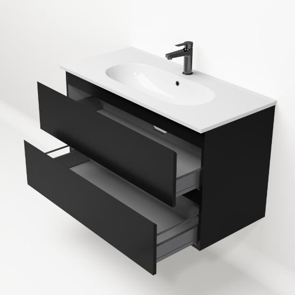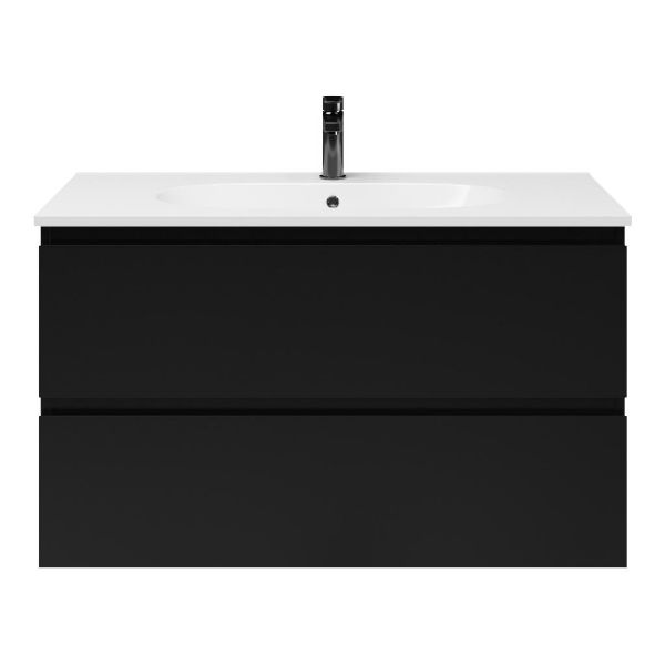 Bellanti Gisella/Como badmeubel 100x46 2 softclose laden zwart mat greeploos keramische wastafel wit met 1 kraangat