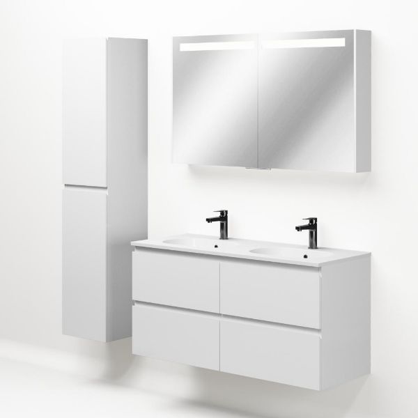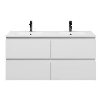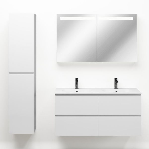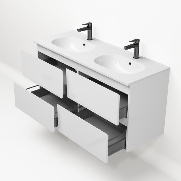 Bellanti Gisella/Como badmeubel 120x46 4 softclose laden wit hoogglans greeploos keramische wastafel dubbel wit met 2 kraangaten
