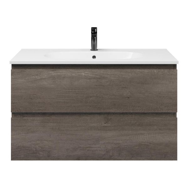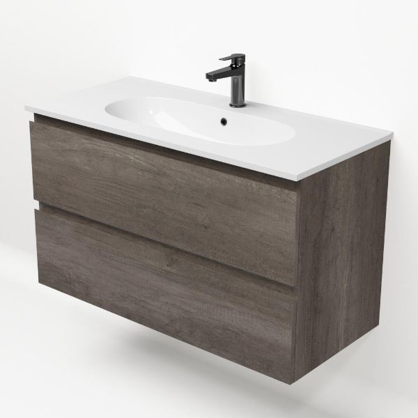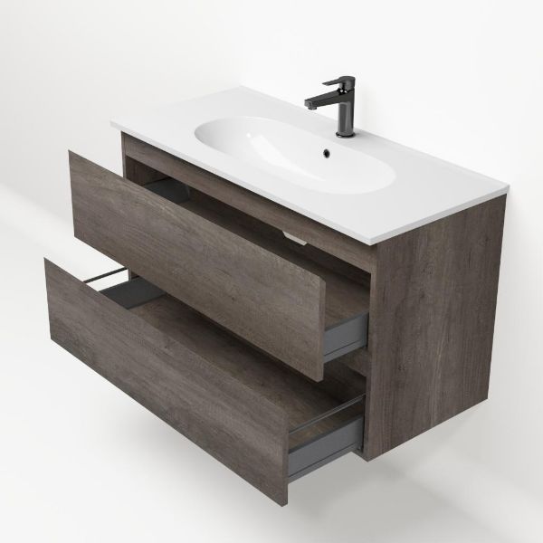 Bellanti Elena/Como badmeubel 100x46 2 softclose laden olm donker grijs greeploos keramische wastafel wit met 1 kraangat