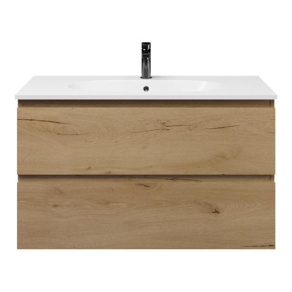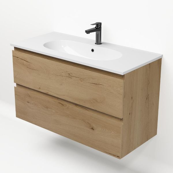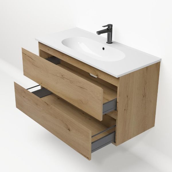Bellanti Elena/Como badmeubel 100x46 2 softclose laden eiken natuur greeploos keramische wastafel wit met 1 kraangat
