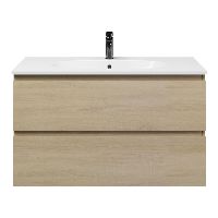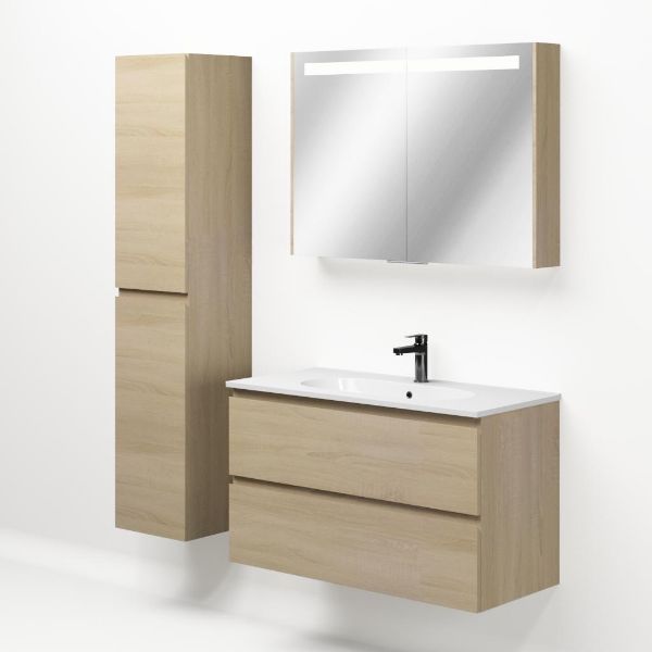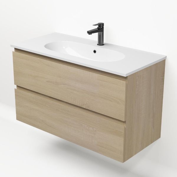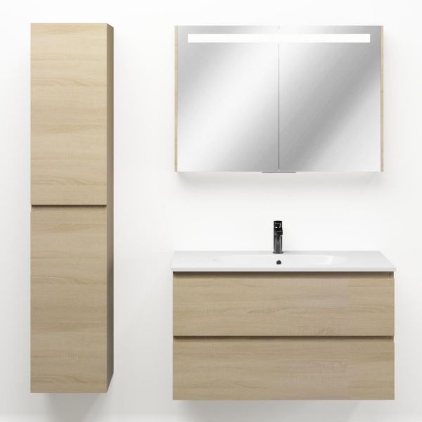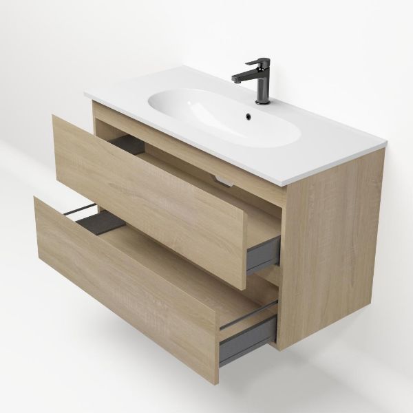 Bellanti Elena/Como badmeubel 100x46 2 softclose laden eiken licht greeploos keramische wastafel wit met 1 kraangat