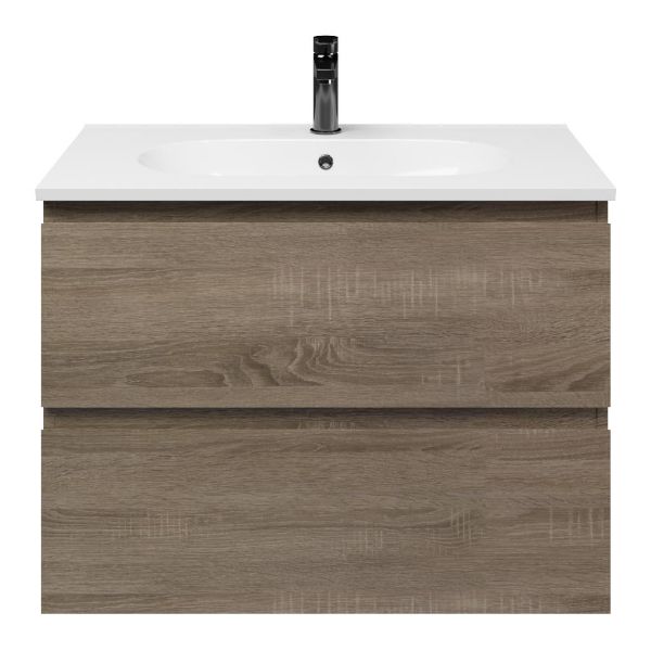 Bellanti Elena/Como badmeubel 80x46 2 softclose laden eiken donker greeploos keramische wastafel wit met 1 kraangat
