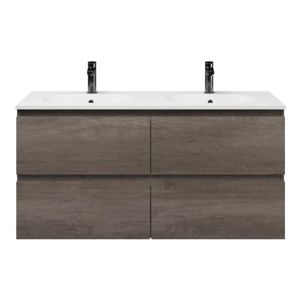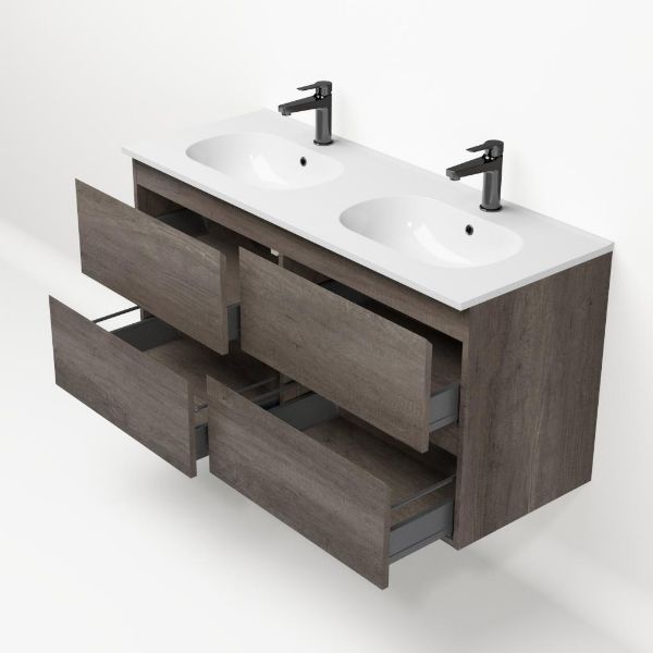Bellanti Elena/Como badmeubel 120x46 4 softclose laden olm donker grijs greeploos keramische wastafel dubbel wit met 2 kraangaten