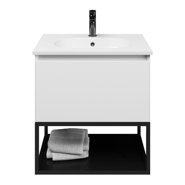 | Bellanti Solo/Tela/Como badmeubel 60x46 1 softclose lade wit mat greeploos keramische wastafel wit met 1 kraangat met mat zwart metalen frame |