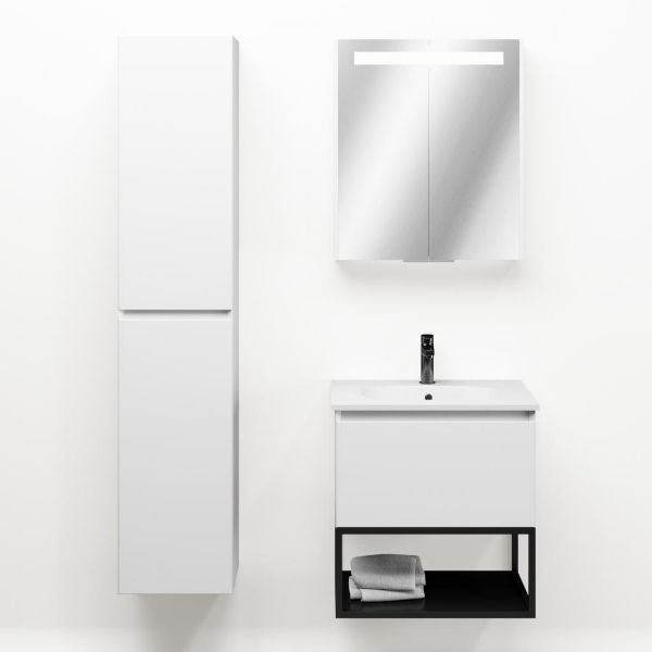 | | Bellanti Solo/Tela/Como badmeubel 60x46 1 softclose lade wit mat greeploos keramische wastafel wit met 1 kraangat met mat zwart metalen frame |