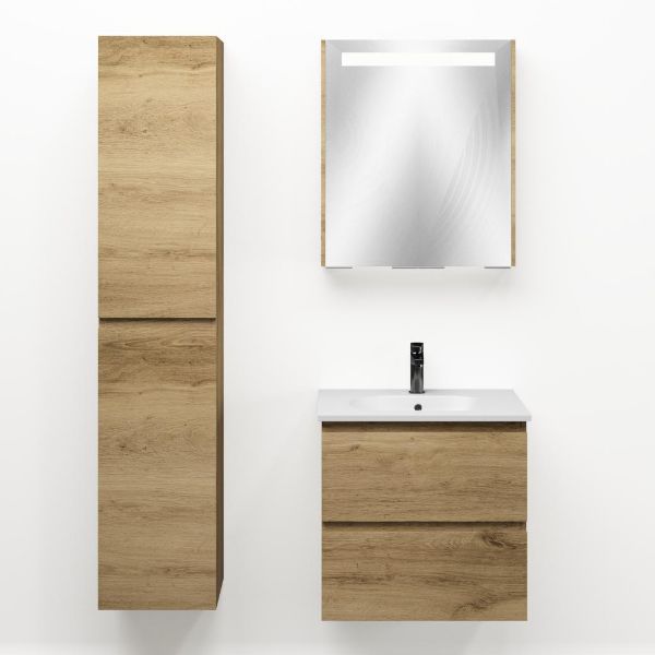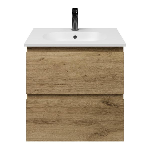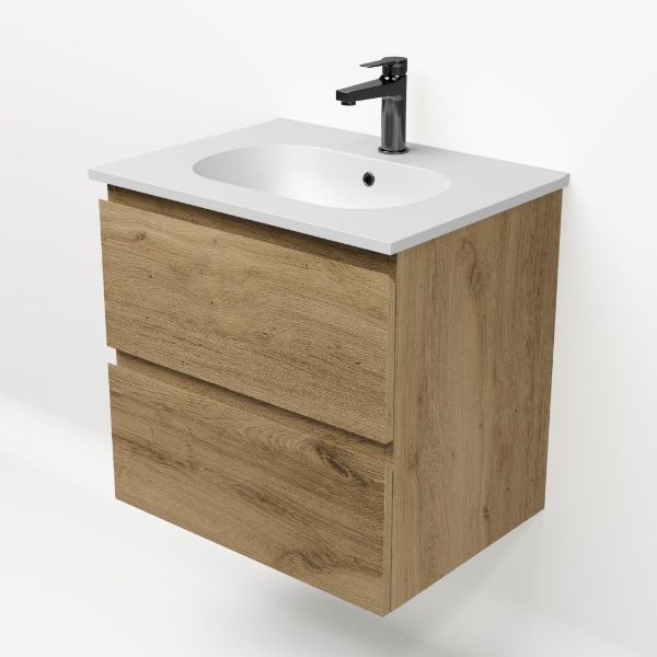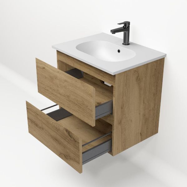 Bellanti Gisella/Como badmeubel 60x46 2 softclose laden warm eiken greeploos keramische wastafel mat wit met 1 kraangat