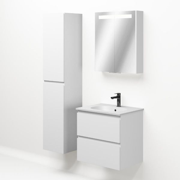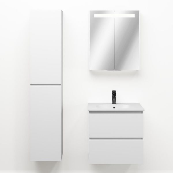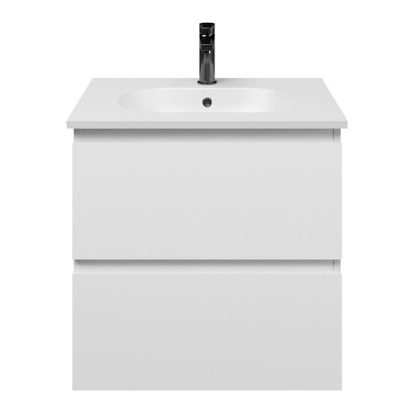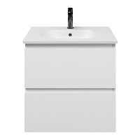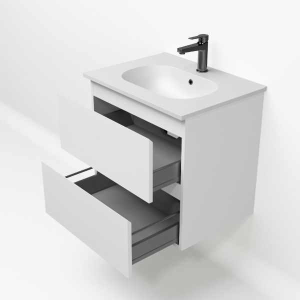 Bellanti Gisella/Como badmeubel 60x46 2 softclose laden wit mat greeploos keramische wastafel mat wit met 1 kraangat