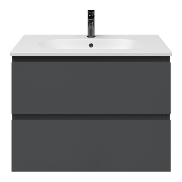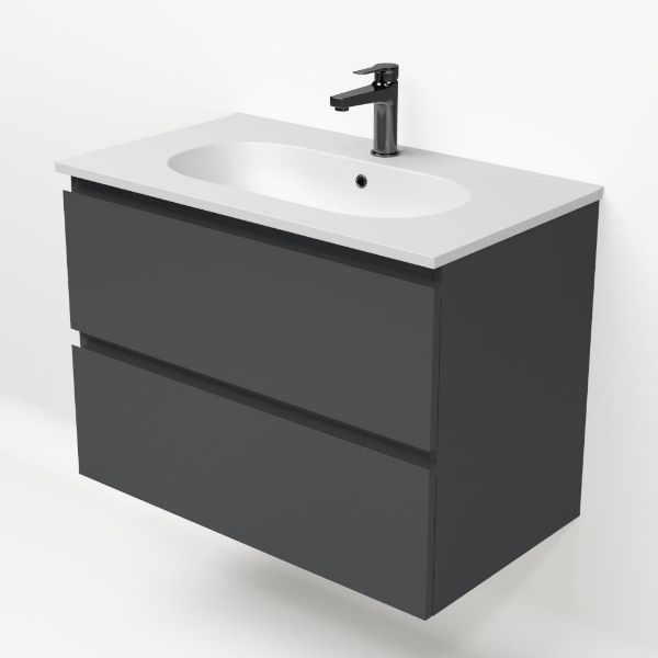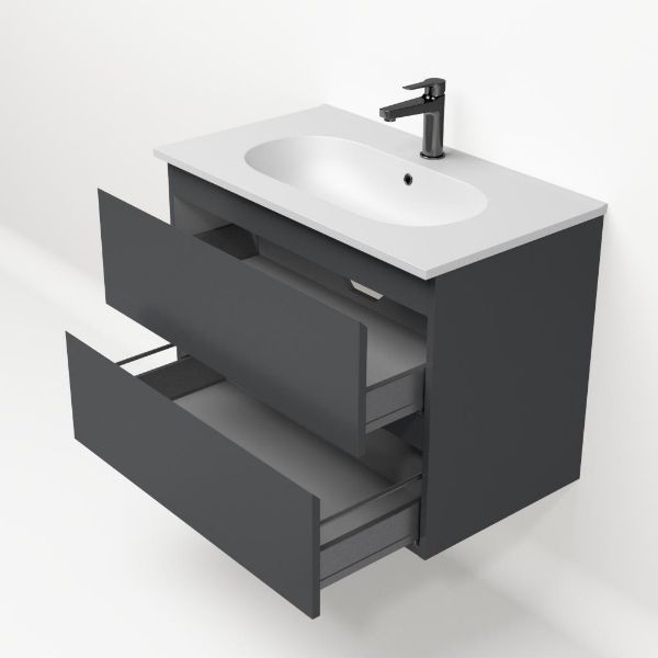 Bellanti Gisella/Como badmeubel 80x46 2 softclose laden antraciet mat greeploos keramische wastafel mat wit met 1 kraangat