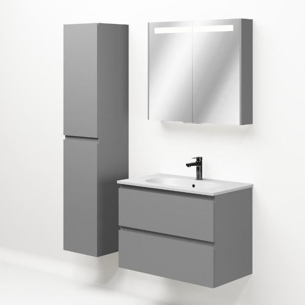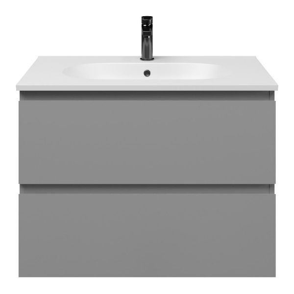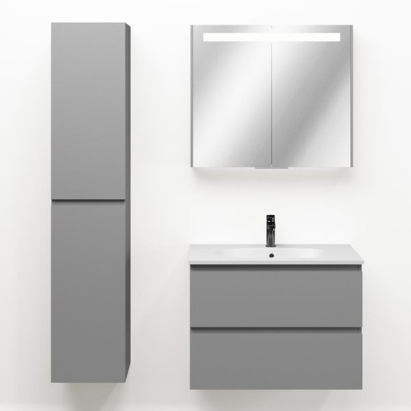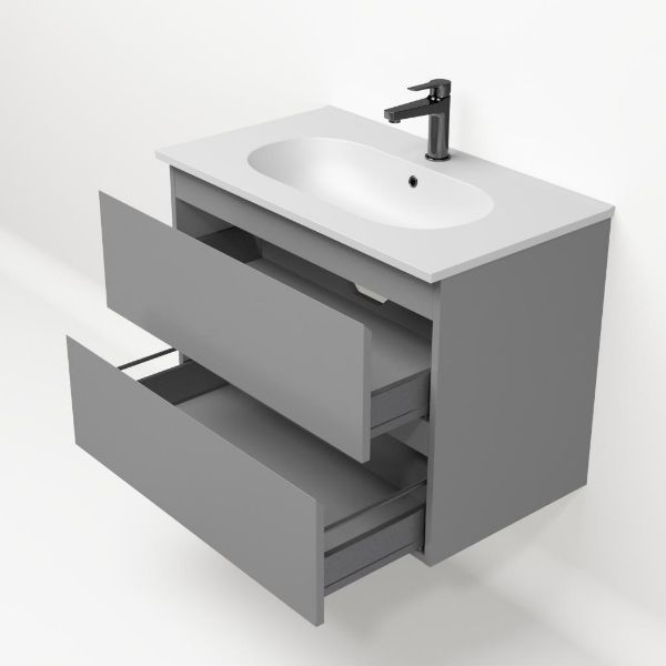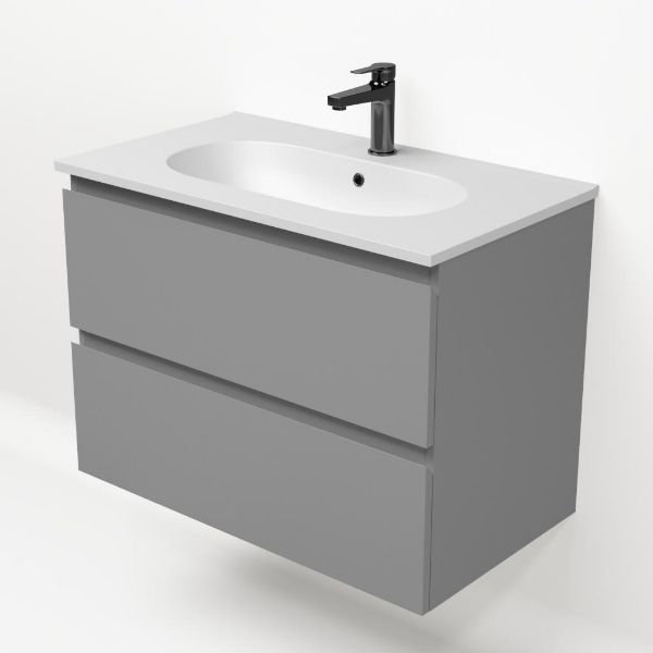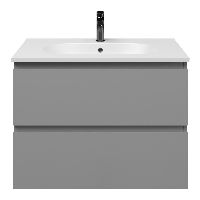Bellanti Gisella/Como badmeubel 80x46 2 softclose laden licht grijs greeploos keramische wastafel mat wit met 1 kraangat