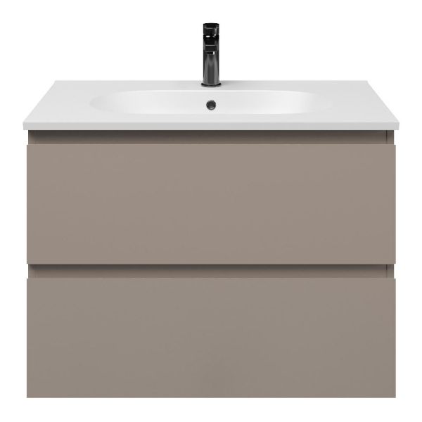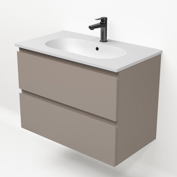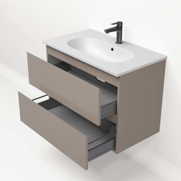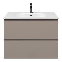 Bellanti Gisella/Como badmeubel 80x46 2 softclose laden taupe greeploos keramische wastafel mat wit met 1 kraangat