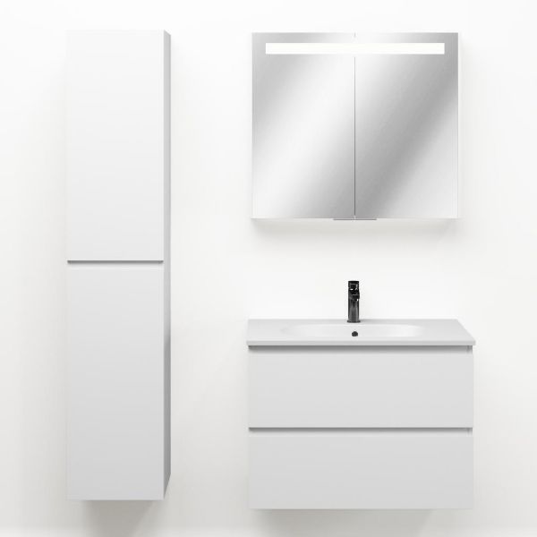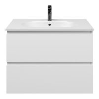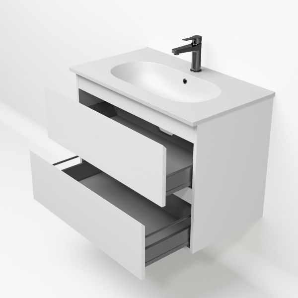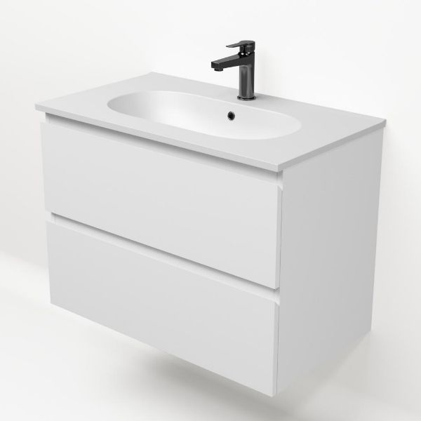 Bellanti Gisella/Como badmeubel 80x46 2 softclose laden wit mat greeploos keramische wastafel mat wit met 1 kraangat
