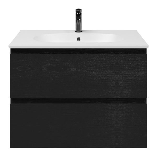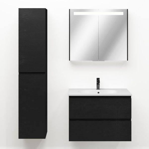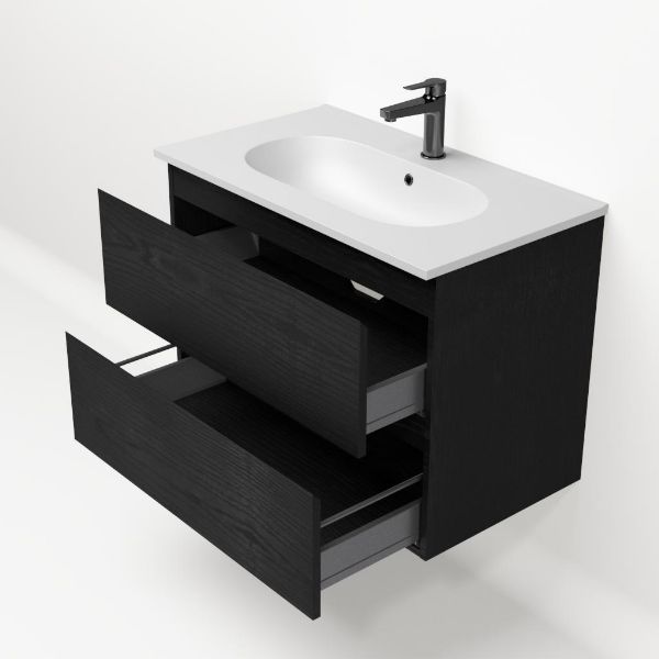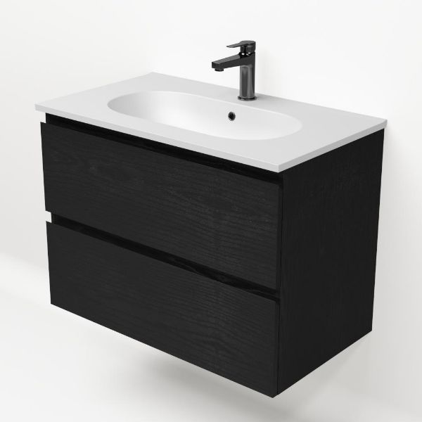 Bellanti Gisella/Como badmeubel 80x46 2 softclose laden zwart mat eiken greeploos keramische wastafel mat wit met 1 kraangat